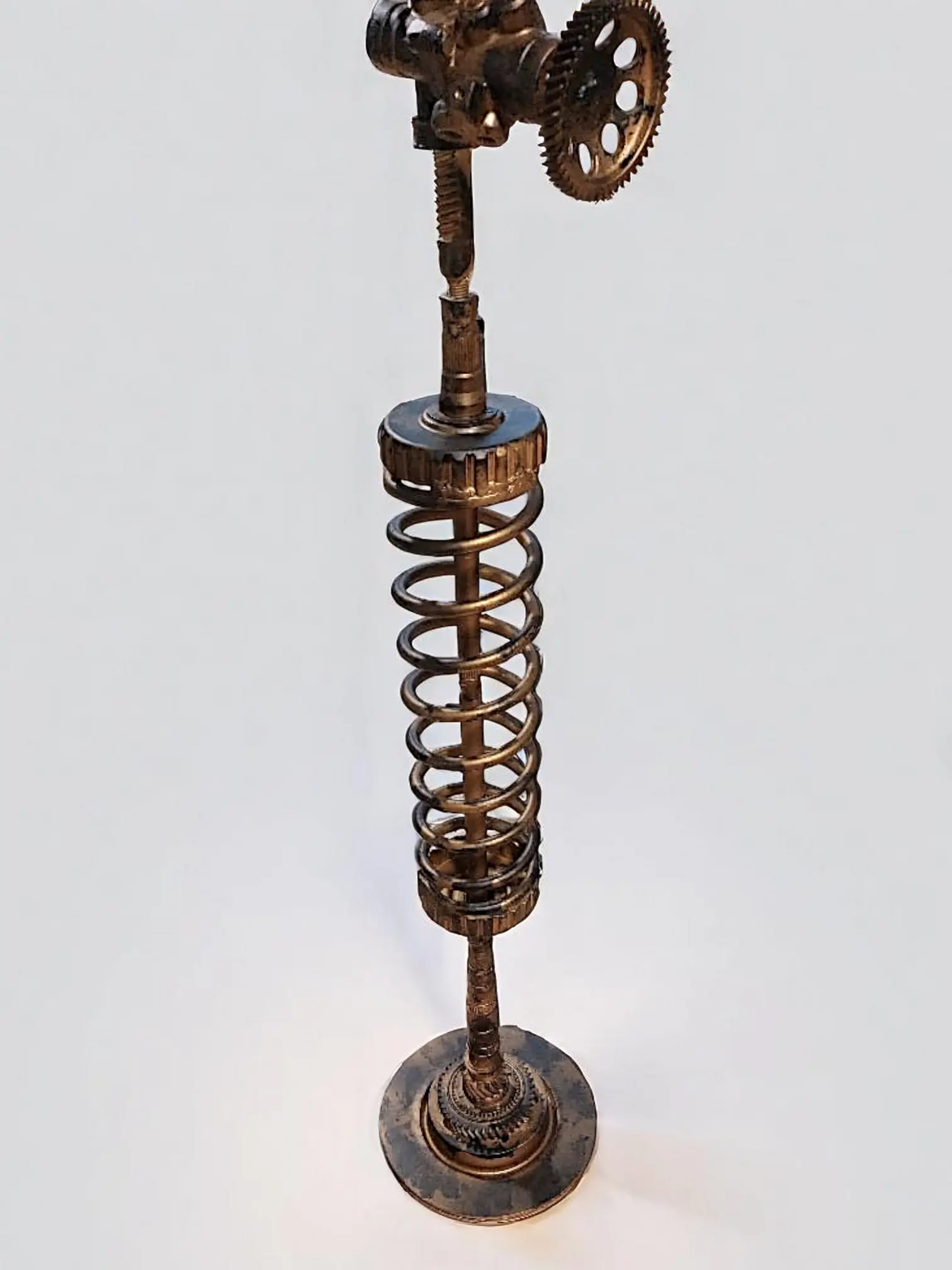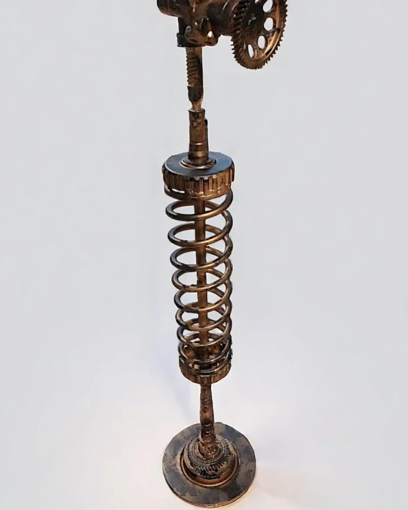 Constructed from salvaged crankshafts, springs, gears, and cams — giving new life to forgotten metal.