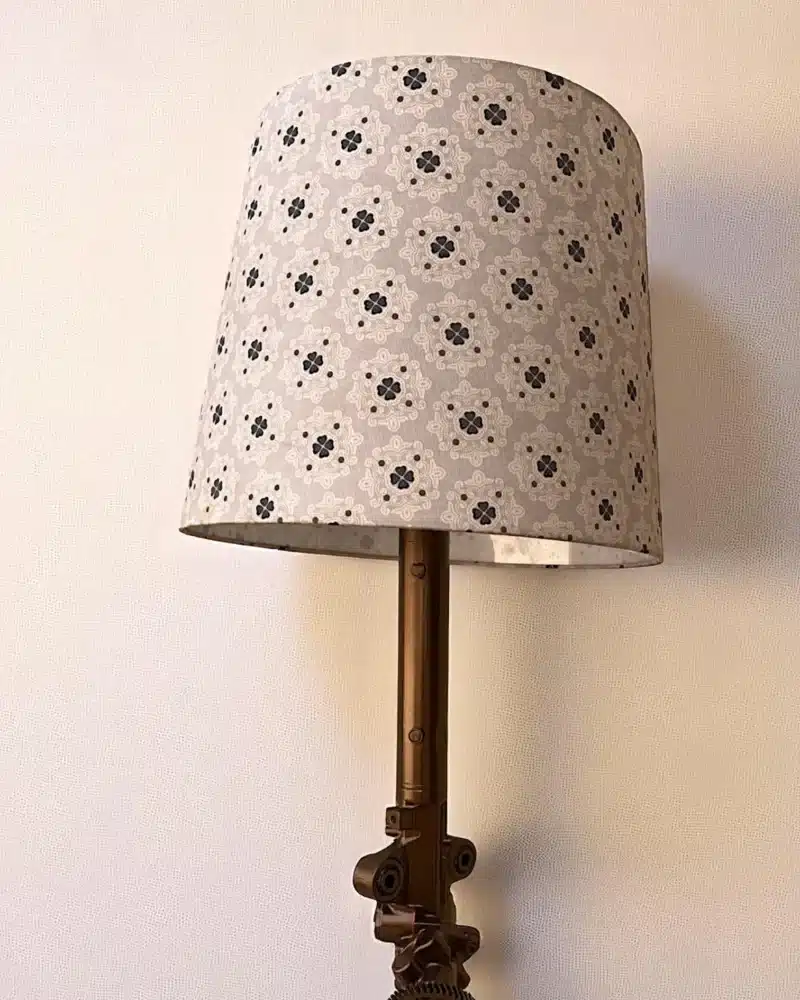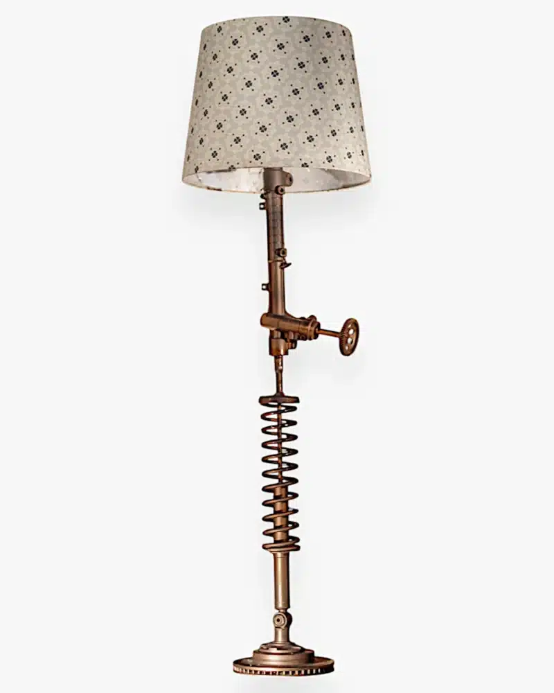 This lamp doesn’t just illuminate — it tells a story. Born from discarded machine parts and elevated with artisan skill, it’s both functional lighting and a sustainable conversation piece.