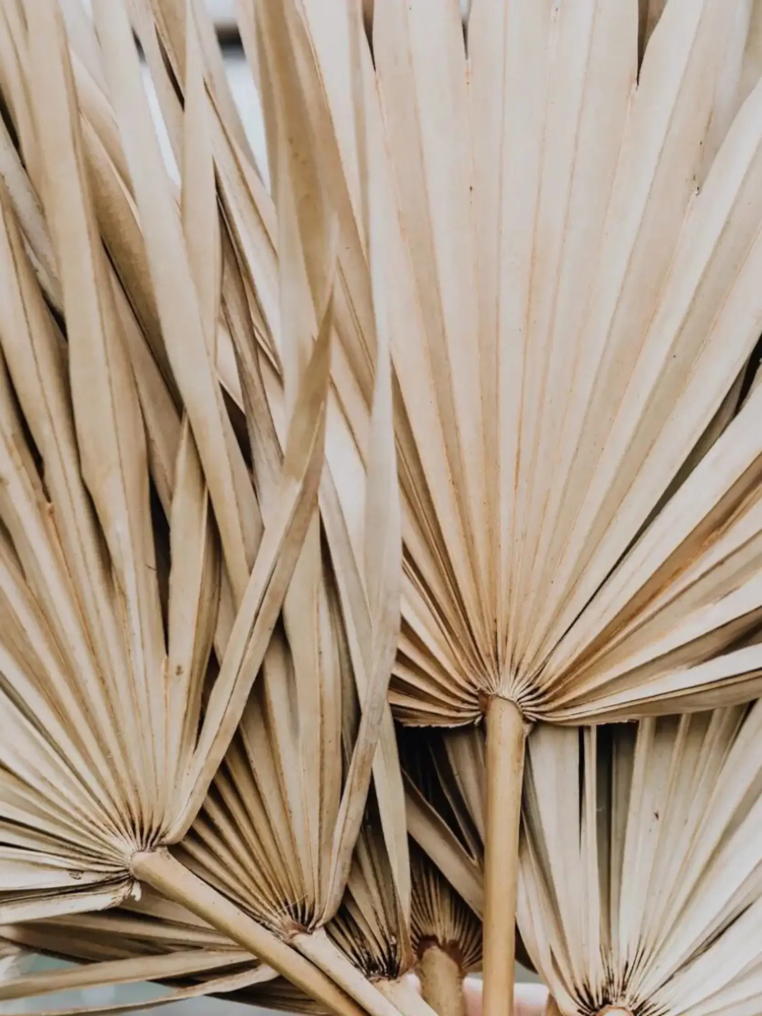 Faux leather straps add a refined touch to the raw palm texture, blending craft with character.
