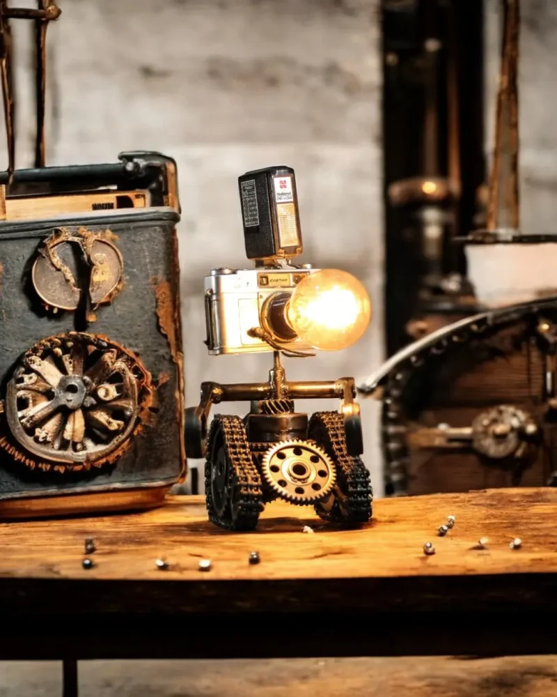 Using salvaged gears, pistons, and chains, every lamp is a handcrafted blend of old mechanics and new purpose. Strong, expressive, and one-of-a-kind.