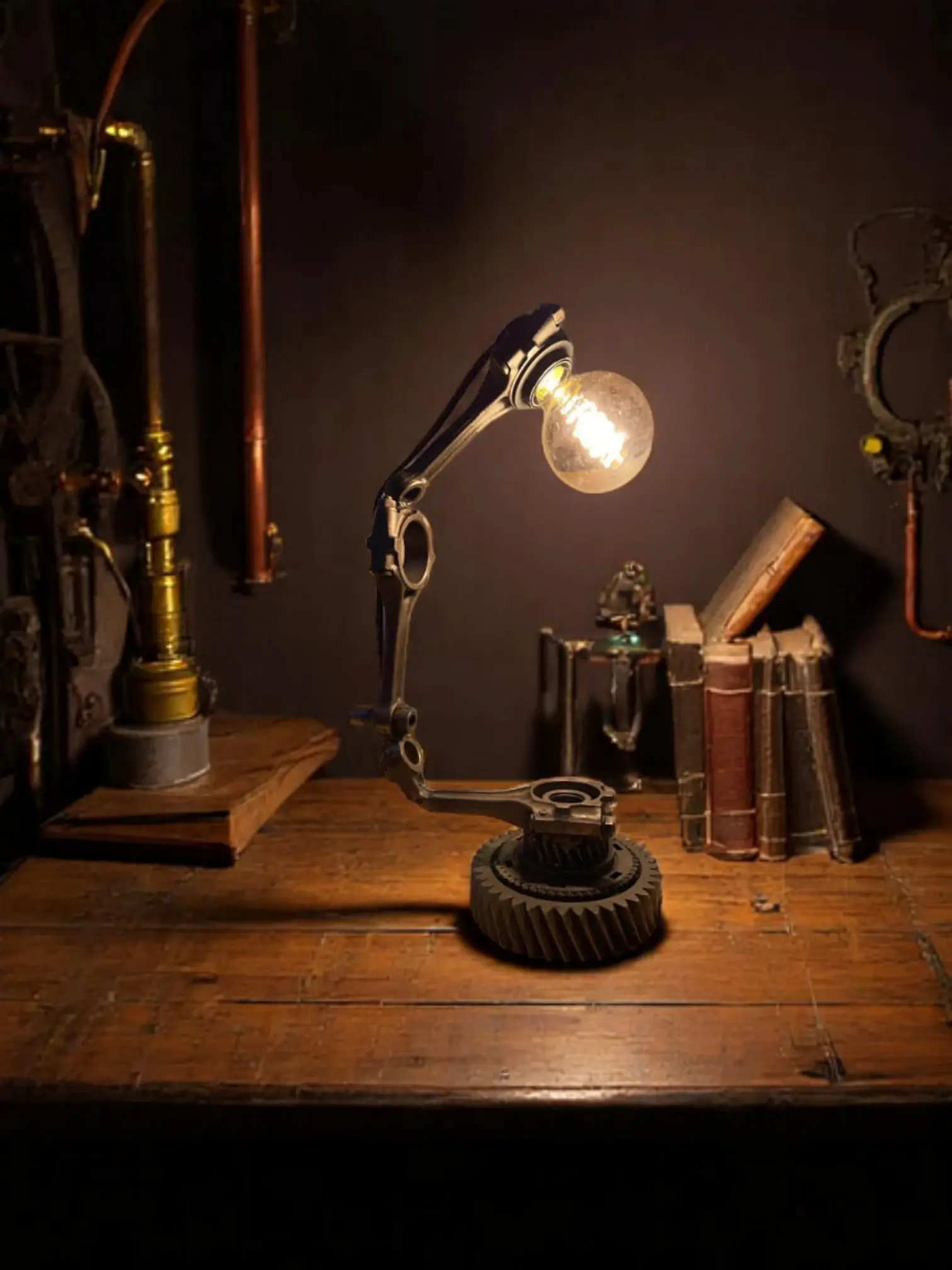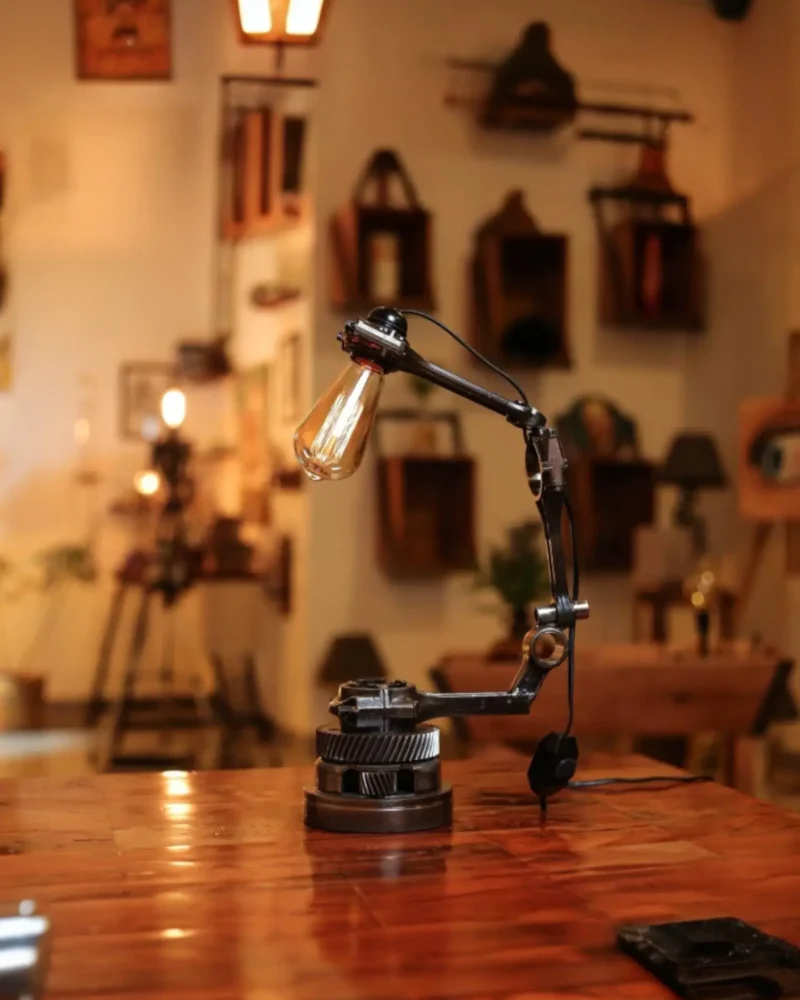 This lamp is crafted from real automotive gears and joints — the kind that once moved engines. Now, reimagined as a functional object, these raw materials find a new life with personality and purpose.