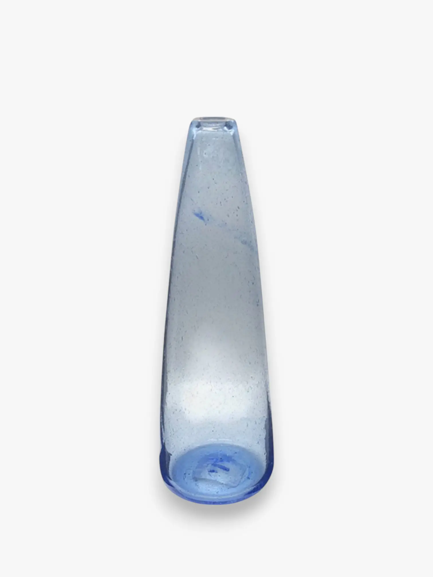 A hand-blown vase made from 100% recycled glass, shaped like an elongated drop with a narrow opening — ideal for single stems or simple arrangements. Each piece is uniquely crafted in Egypt using traditional, non-mechanical techniques.