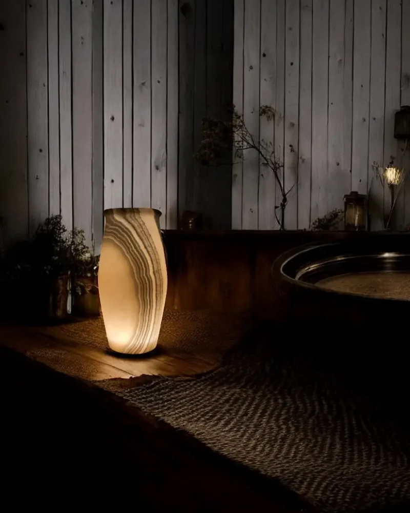 This sculptural alabaster lamp isn’t just functional — it’s a design object that brings warmth, texture, and visual harmony to any space.